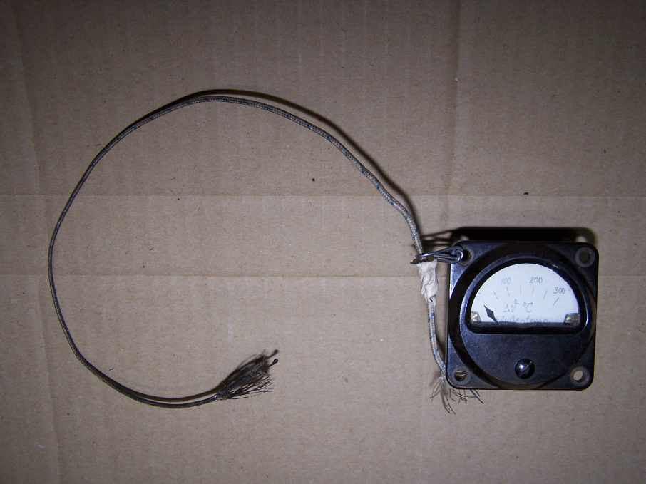 du brauchst eigentlich nur ein Thermoelement, bestehend aus einem Eisen und einem Konstantandraht, die verschweißt sind. Das gibt eine Spannung ab. Dazu ein passendes Meßwerk. So dürften die Geräte zur Messung der Kerzentemperatur aufgebaut sein. Solch ein Gerät braucht nicht einmal die 12V vom Bordnetz zur Funktion. Das Meßwerk im Foto stammt aus dem 2.Weltkrieg aus einem Panzer oder Flugzeug. Das Thermoelement ist aus den 80-ern. Die Leitung läßt sich verlängern. Genauigkeit nicht umwerfend. Wenn du das kostenlos haben willst muß ich das bis morgen wissen. Dann packe ich das ein und bringe es nach Deutschland.