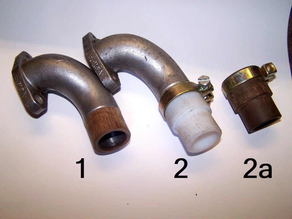 Hier würde ich aber die modifizierten Ansaugkrümmer vom Club empfehlen (Auf dem Foto Nr. 1) Die anderen Isolierstücke aus Teflon oder Pertinax (2 und 2a) versetzen den Vergaser