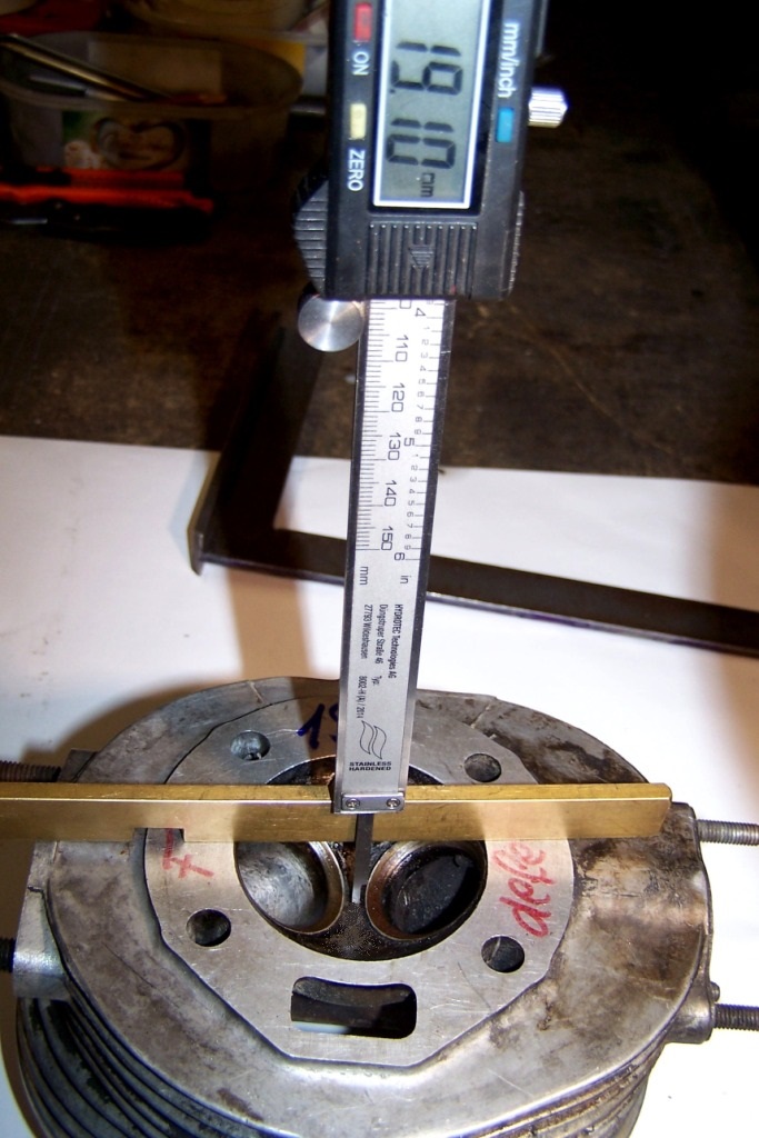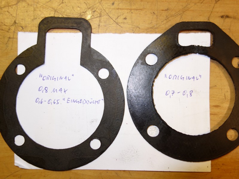 Dann wie von Heinkel-Bernd vorgeschlagen, die originale Fussdichtung wieder montiert, um mal Zylinder-Unterstand zu messen, zur Berechnung des Verdichtungsverältnisses: