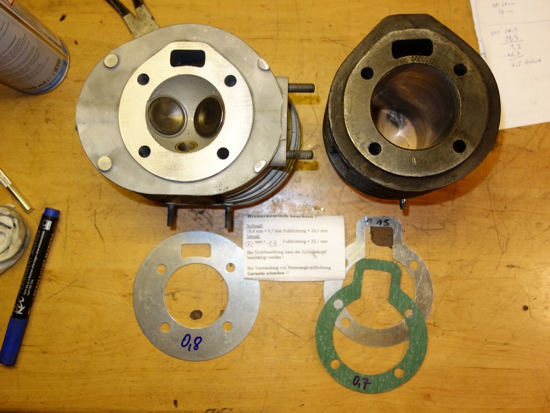 Wie gesagt die Zylinder/Kolben-Kombination war vorher schon montiert und wurde übernommen, Zylinderkopf wurde vom Club überholt, Dichtungen habe ich neu dazu bestellt.
