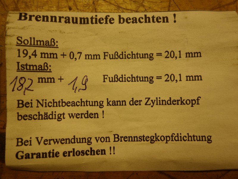 Der Zylinderkopf ist der gleiche der drauf war, nur eben überholt und geplant vom HCD inkl. dem "Messprotokoll" und dem Blech.