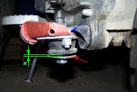 Wenn die Fangscheibe am Gummi anliegt befinden sich i.d.R. auf der Oberseite des Gummilagers (blauer Pfeil)