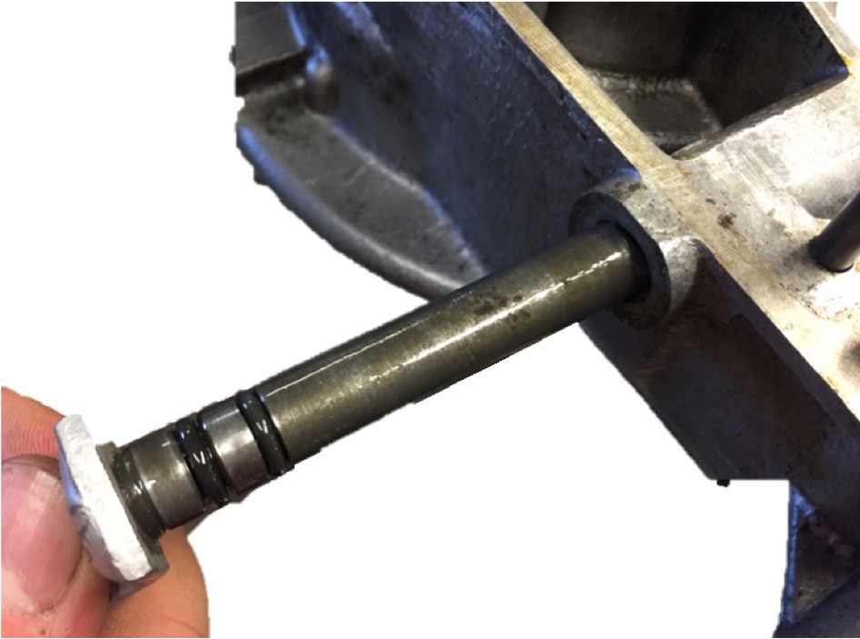 Im Zuge des Zusammenbaus habe ich Bernd dann gleich noch vorgeschlagen, in die vertikal im Motor steckende Schaltwelle des 102 A1 eine zusätzliche Nut für einen zweiten O-Ring einzudrehen, damit diese laut Bernd doch recht häufige Leckagestelle besser abgedichtet wird. Bernd war von meiner Idee sofort überzeugt und hat auf seiner Drehbank gleich eine zweite Nut nach dem Muster der bereits vorhandenen eingedreht. Weil ihm diese Verbesserung aber auch neu war und ich auf die Schnelle auch nichts dazu im Forum fand, dachte ich mir, ich teile diese Idee mal mit euch, damit sich jeder, der von Öltropfen an der Schaltwelle geplagt ist, bei der nächsten Motorspaltung zu helfen weiß.