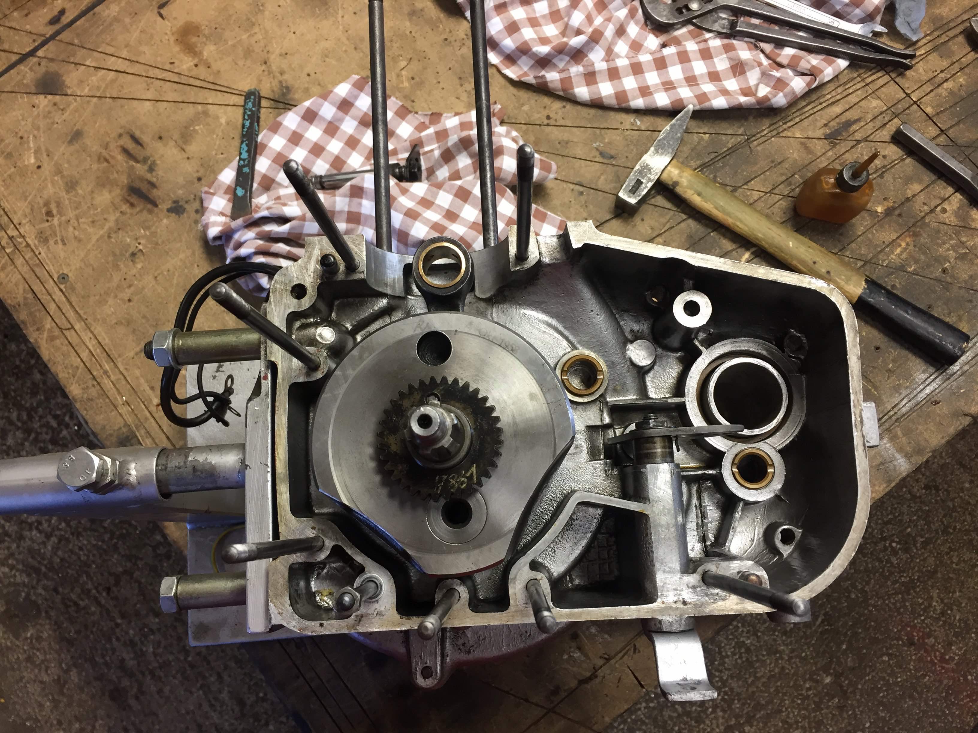 Heute war ich bei unserem Heinkel-Papst Bernd aus Bayreuth, um meinen vom Teufel höchstpersönlich verfluchten 102-A1 Motor (siehe http://www.heinkel-club.de/forum/viewto ... zel+102+a1 ) vom Profi zusammenbauen zu lassen und hab ihm dabei über die Schulter schauen dürfen und natürlich mega viel gelernt. Zunächst meinen allerherzlichsten Dank dafür!