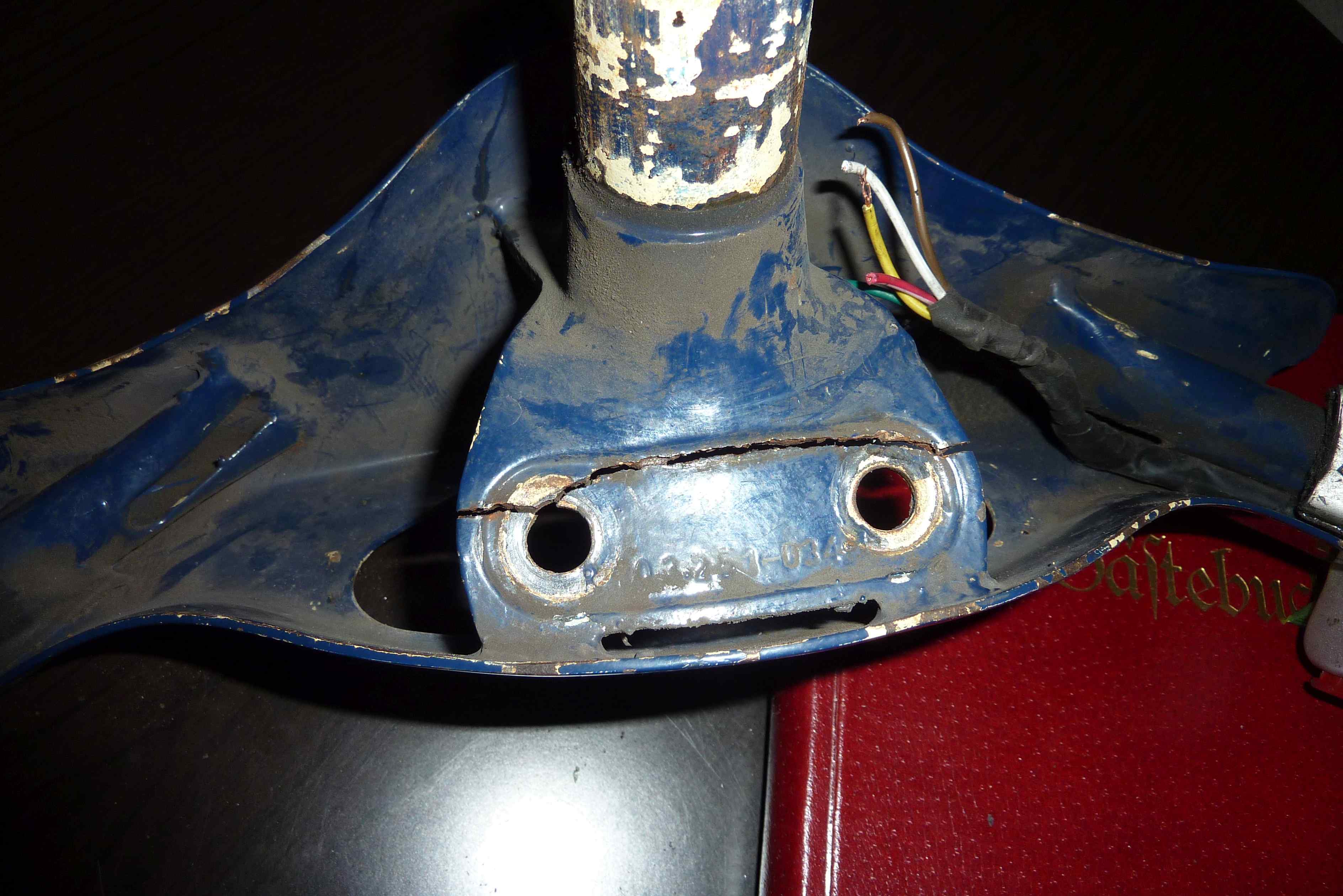 Beim abendlichen Fahrzeugcheck fiel auf, dass eine große Scheibe bedenklich wackelte. Bei genauer Untersuchung trat dieser lebensgefährliche Riss hervor.