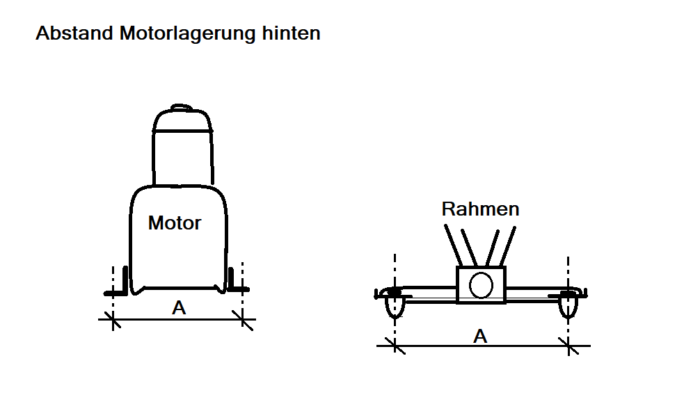 Das Maß von Mitte bis Mitte der senkrechten Bohrungen "A"an den Motor-Lagerbügeln ist