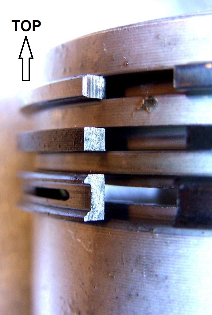 Viele, nicht alle, Kolbenringe sind in der Nähe des Stoßes einseitig mit "TOP" gekennzeichnet.