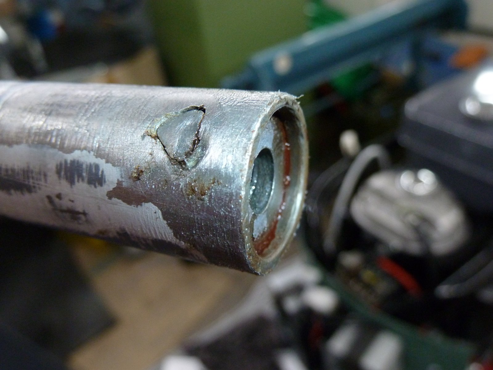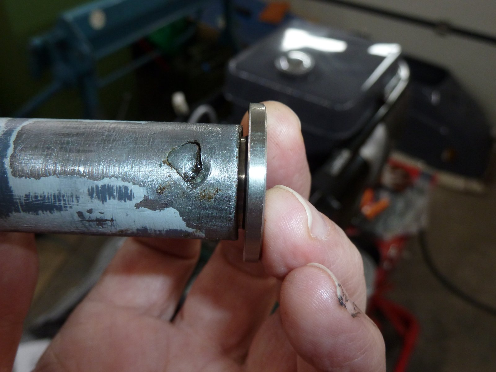 Ich werde das alte Teil dann kpl. entfernen, da das Gewinde auch schon bessere Zeiten gesehen hat und ein neues, gedrehtes Teil mit frischem M8 x 1 Gewinde per MAG einschweißen und außen sauber verschleifen.