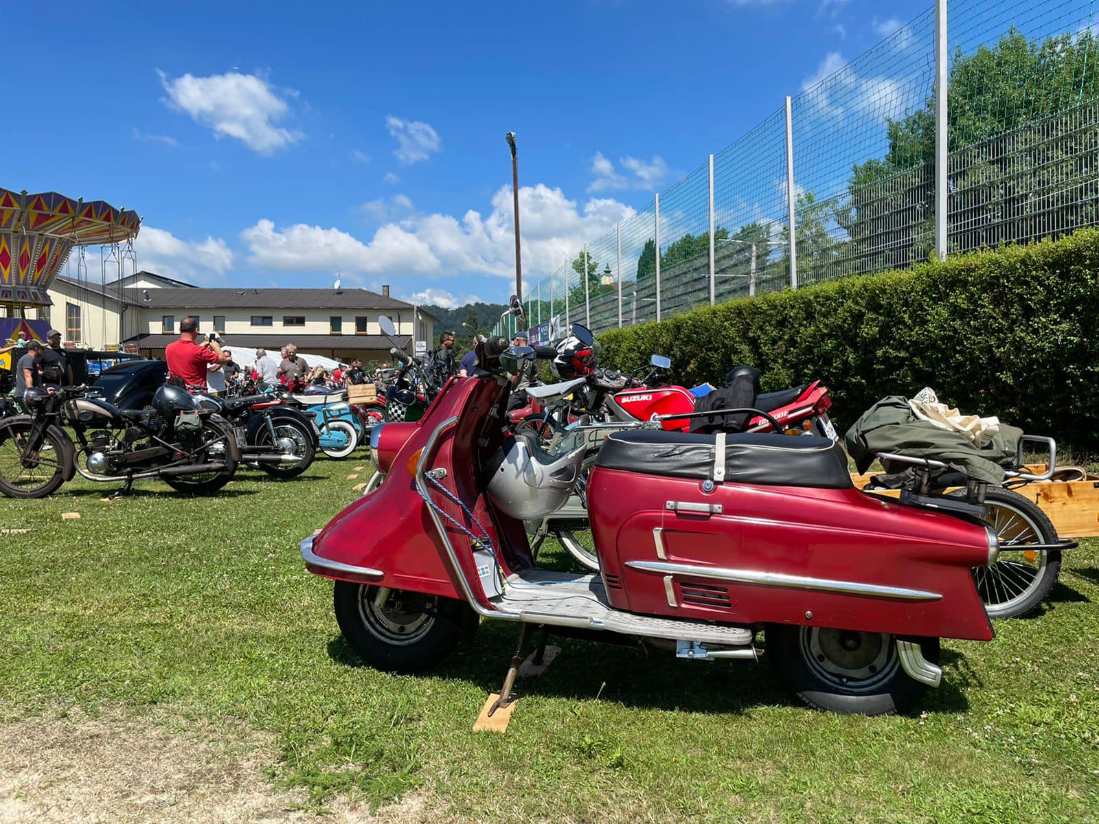 Fortsetzung der Geschichte: ich wollte ja umbedingt meine Emma (so nenne ich meinen Touristen) wieder flott bekommen, um das jährliche lokale Puch-Treffen aufmischen zu koennen. Ich baute daher auf das in der Badewanne beobachtete Verhalten und montierte den Vergaser leicht schräg nach innen gekippt - und siehe an, der Vergaser blieb dicht. Das Leerlaufverhalten war ein wenig schwierig, wobei aber das vielleicht eher auf ein leichtes Hängen des Gasschiebers zuruechzuführen war. Nachdem ich das also alles um 10 Uhr Abends vor dem Puch-Treffen am naechsten Tag festgestellt hatte war dann auch noch die Batterie kaputt, aber das ist eine andere Geschichte... Jedenfalls fuhr ich am naechsten Tag die paar Kilometer guten Mutes zum Treffen, liess meine Emma bestaunen weil sie ja neben den Puchs wie eine Diva wirkt, wollte dann auch noch an der kurzen Ausfahrt teilnehmen, aber nach wenigen Kilometern nahm sie kein Gas mehr an und ich kroch im ersten Gang wieder nach Hause...