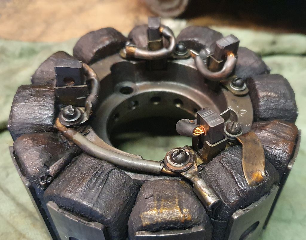 Zum Kollektor: Dieser ist stark zwischen den Lamellen verschmutzt, wohl mit Kohlenabrieb was leitend ist.