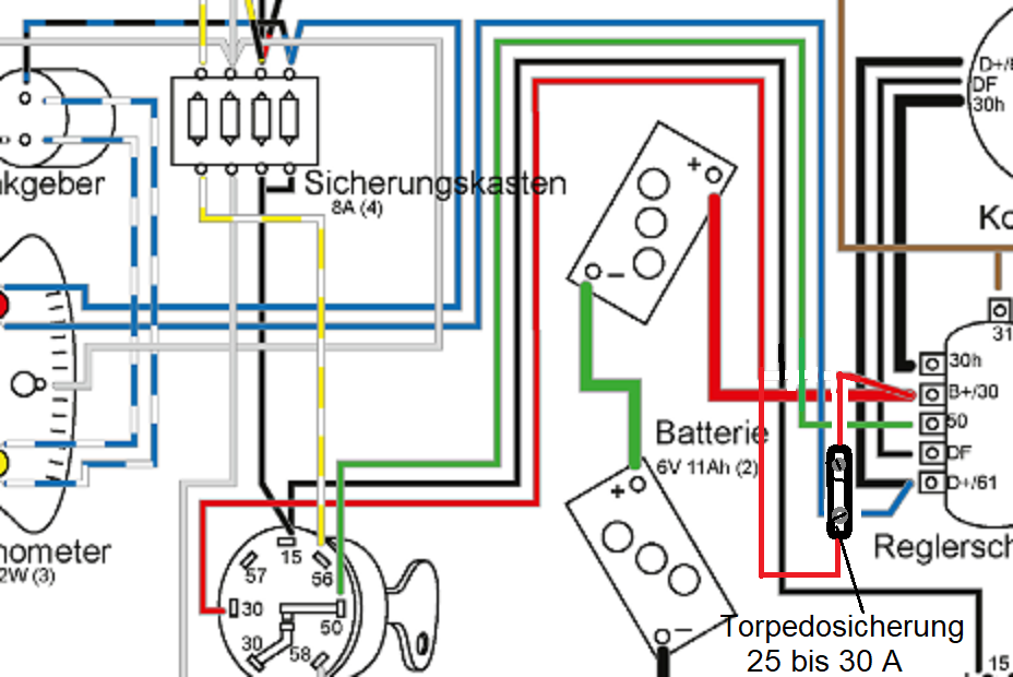 Bin zwar jetzt kein Elektrik-Genie, aber die Ausführungen von Bernd überzeugen mich. Muss den Heinkel auf der Suche nach meinem Zündfunken ja eh zerlegen, da kann ich auch gleich so ne Sicherung einbauen. Schaden kann das auf jeden Fall nicht, wenn man es richtig macht.