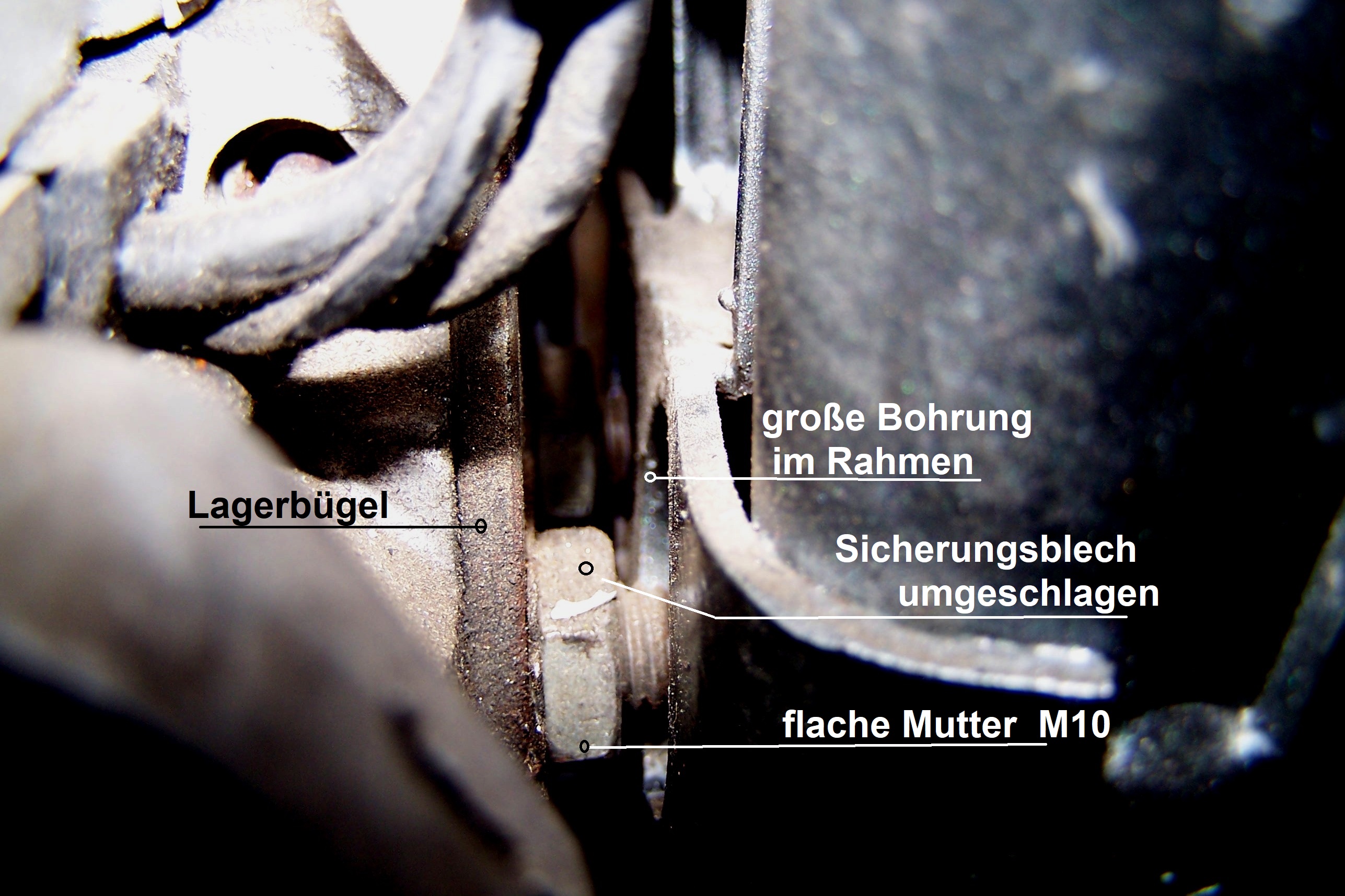 Diese befinden sich genau gegenüber der o.g.flachen Muttern am Lagerbügel und sollen verhindern, dass bei diesen engen Verhältnissen