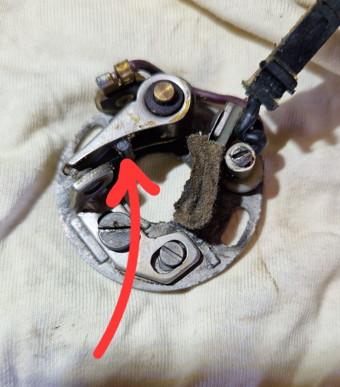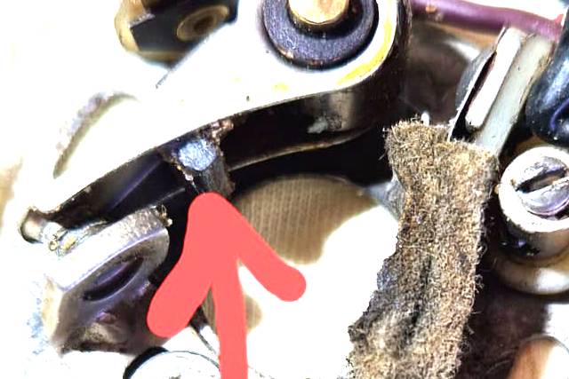 das Blechprofil des Unterbrechers mit dem Unterbrechernocken in Berührung kommt