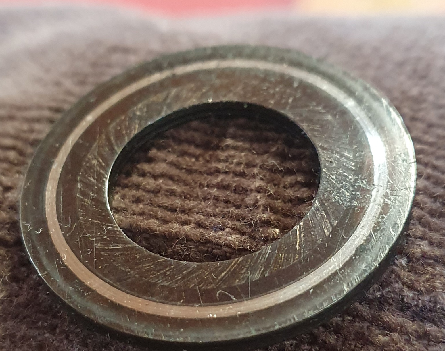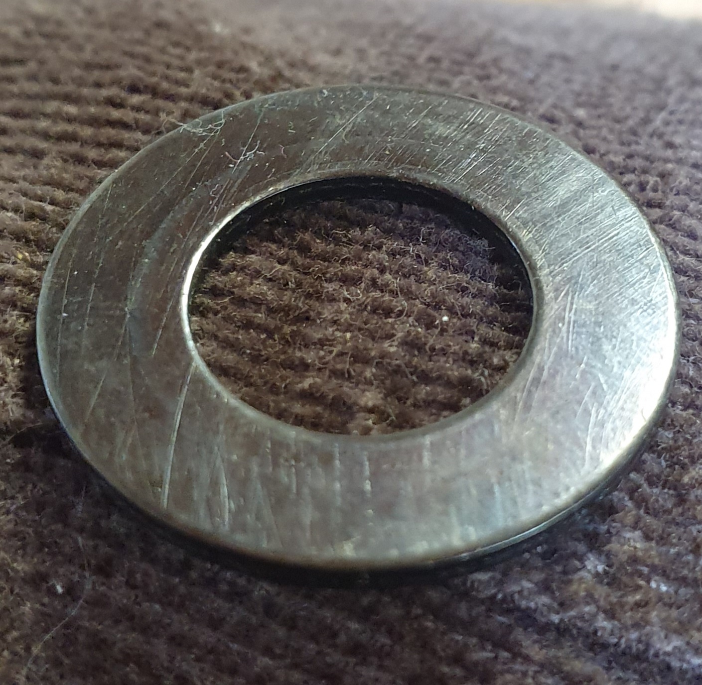 Beim Motorhälften "spalten" kam mir diese Scheibe entgegengepurzelt. Anscheinend klebte sie an einer Fläche? Und löste sich beim Trennen der Hälften.