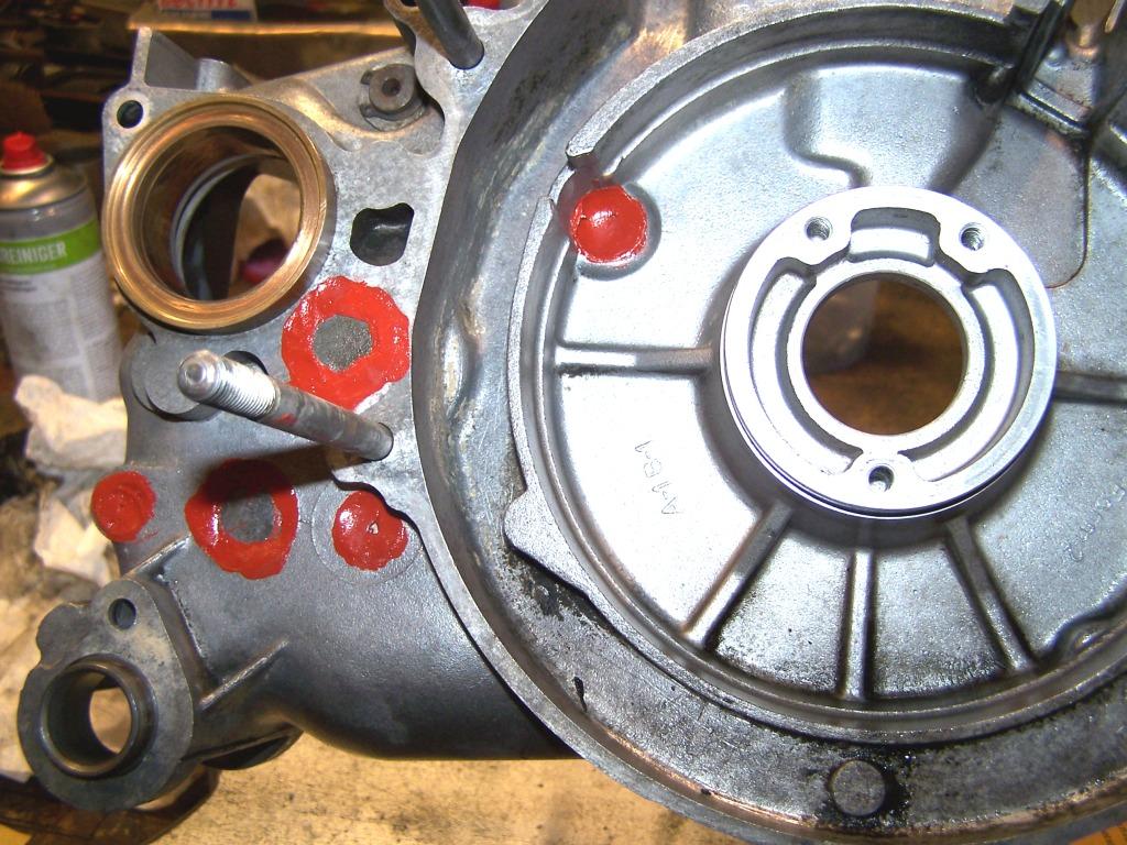 Auf dem Foto nachträglich prophylaktisch abgedichtet. Diese Verschlussscheiben sind im Shop erhältlich (unter Kurbelgehäuse 31 bis 34)