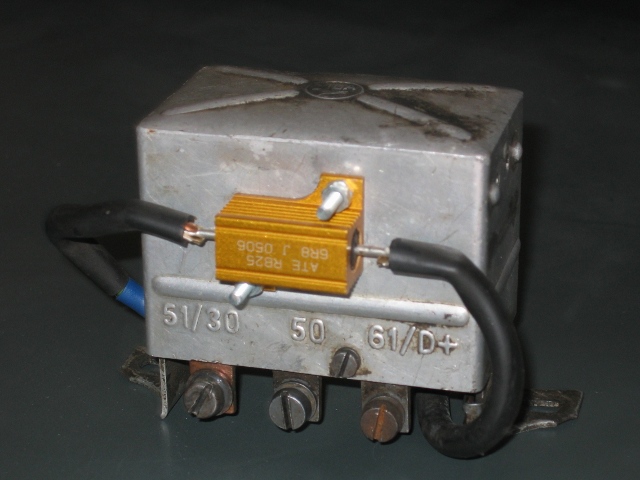 Ich behaupte jetzt, dass der Draht, der in den Regler geht, die vom Widerstandsgehäuse weitergeleitete Masse für die Reglerspule ist.