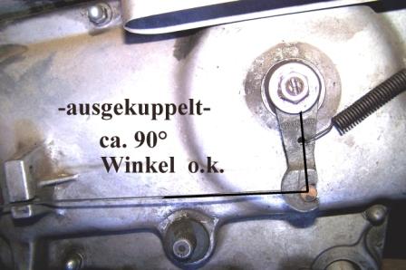 Der Kupplungshebel soll bei gezogener Kupplung mit dem Kupplungszug einen Winkel