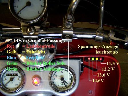 fünf LEDs eingebaut, da ich wenigstens für Blinker und Fernlicht noch eine Kontrolle haben wollte!