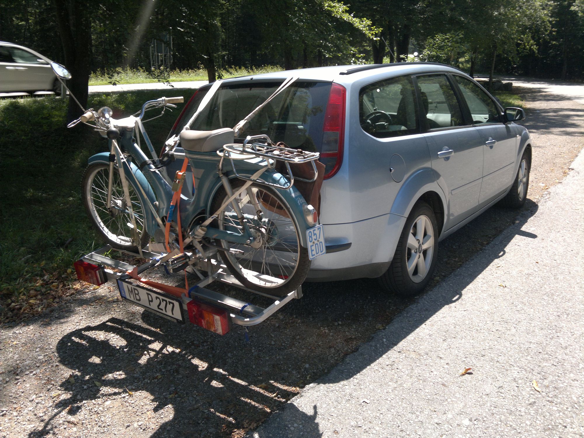 Wenns dann doch mal weiter weg gehen soll, wird perle auf den Fahradträger gepackt und auf gehts.