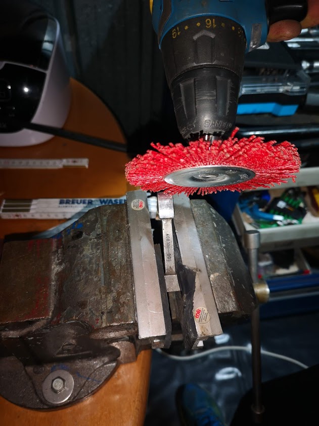 Jetzt stehe ich in meiner Garage und habe eine Menge eingelaufener Schlepphebel, aber ich habe leider noch keine Vorrichtung um die Schlepphebel exakt zu schleifen. Auch habe ich keine Satiniermaschine.......Zu verlieren habe ich aber auch nichts, da ich ja eine Menge eingelaufener Schlepphebel habe die ich so nicht wieder einbauen würde. Also habe ich mal etwas versucht. ACHTUNG: ES WAR EIN VERSUCH UND MIR IST KLAR DAS DIES KEIN PROFI NACHMACHEN WÜRDE. ICH WOLLTE NUR EIN GEFÜHL DAFÜR BEKOMMEN!