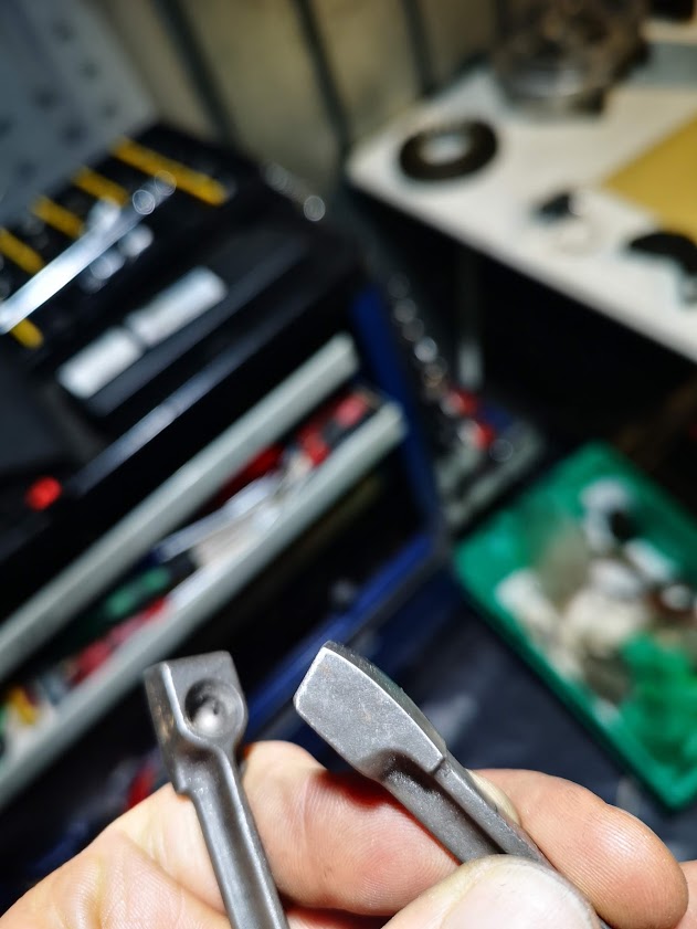 Ich weiß nicht warum, aber ich tendiere auf die erste Variante. Sogar meine Frau, mit ihren längeren Fingernägel, spürt die zwei Fehlstellen auf der neuwertigen Nockenwelle kaum bis gar nicht.......Außerdem bin ich total stolz auf die geschliffenen Schlepphebel. Aber wer sagt mir das ich beim Schleifen nicht die Wölbung versaut habe. Gut schauts aus...aber... Ich denke nach. Macht aber Spaß. Dienstag geht meine Bestellung an den Club raus und wenn die Teile da sind, geht der Motor zusammen! Bis dahin muss ich mich entschieden haben!