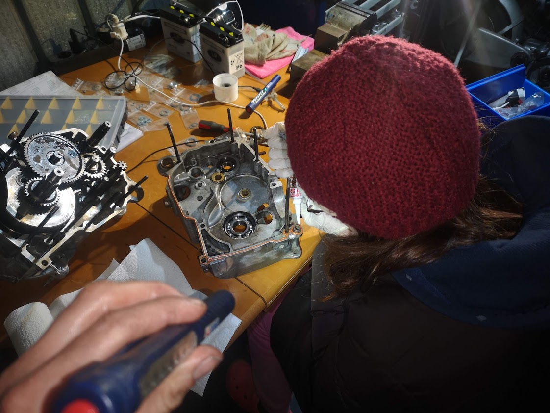 Währenddessen hat meine Frau Dichtmittel auf die Dichtfläche der Motorhälften geschmiert.(Loctite 5920....habe ich mir von Bernd abgeschaut. Normalerweise schwöre ich aber auf Dirko HT)