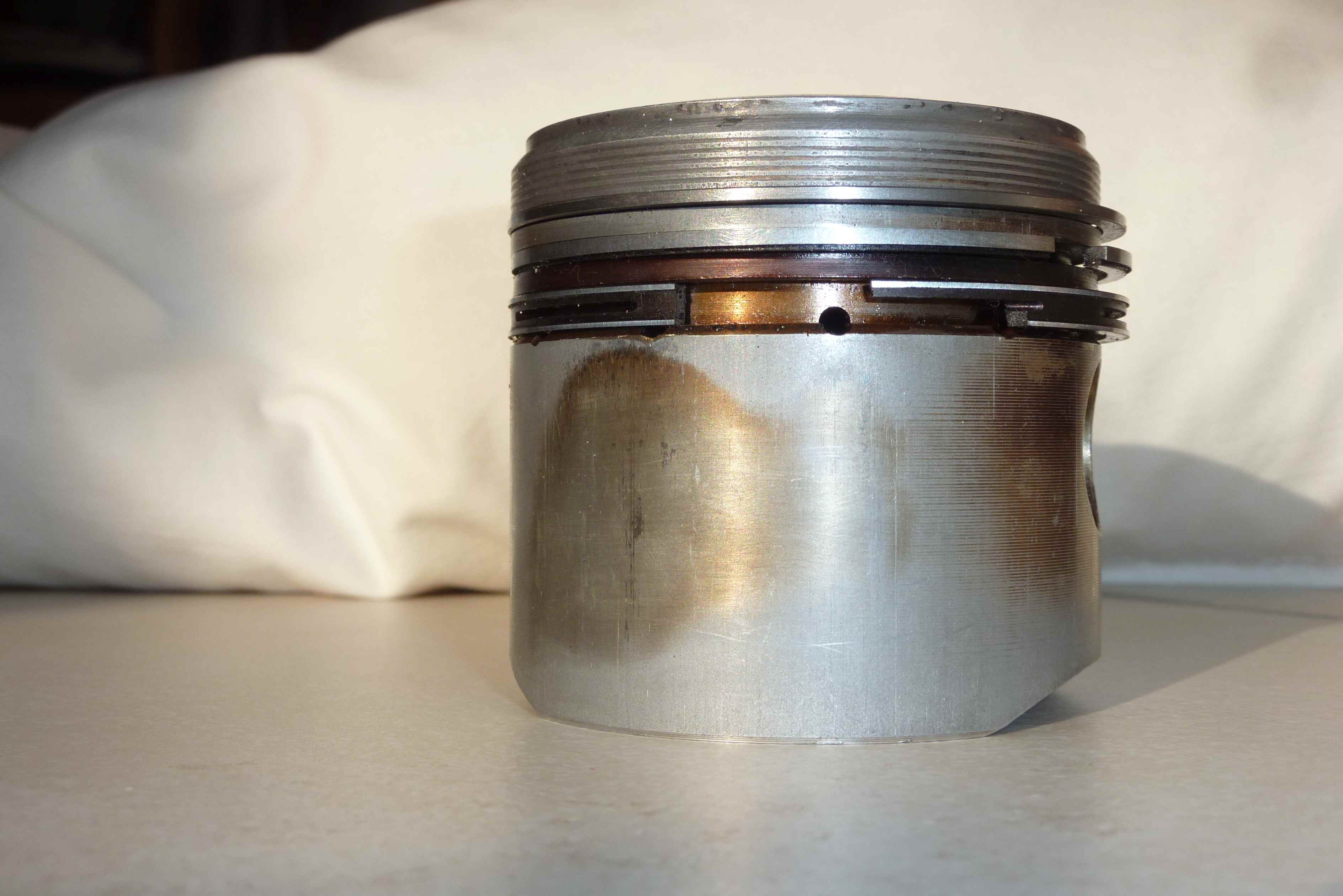 Dabei lief der Motor bis zuletzt gut und hatte kaum Ölverbrauch und keine sichtbare Fahne! Natürlich hat der Zylinder an der Stelle arge Riefen.