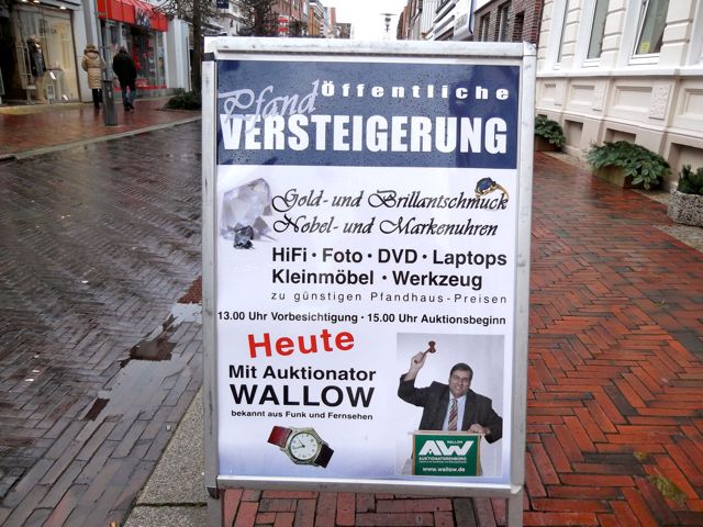 Zum 1. Advent lockte heute Nachmittag eine öffentliche Pfandversteigerung in das "Hotel Stadt Norden" in Norden/Ostfriesland. Der Saal platzte aus allen Nähten. Jens-Martin und ich von den Heinkelfreunden Bremen-Unterweser wollten doch mal sehen, ob der angebotene Heinkel Tourist 103 A2 zum Schnäppchenpreis zu schießen war. Der Roller, Baujahr 1963, TÜV bis 9/14, wurde mit dem Mindestgebot von 2.800,- Euro aufgerufen. Der Auktionator, von Funk und Fernsehen bekannt (angeblich), bekommt auf das Höchstgebot 20 % Zuschlag, d.h. bei 3.000,- Kaufsumme noch mal 600,- Euro obendrauf !