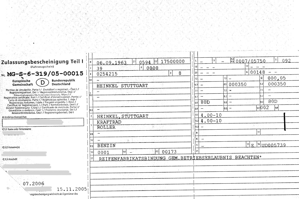 ich kann jetzt über den Verlauf berichten, denn heute ist es gelungen, den Tourist 103 A2 (1962) zuzulassen: