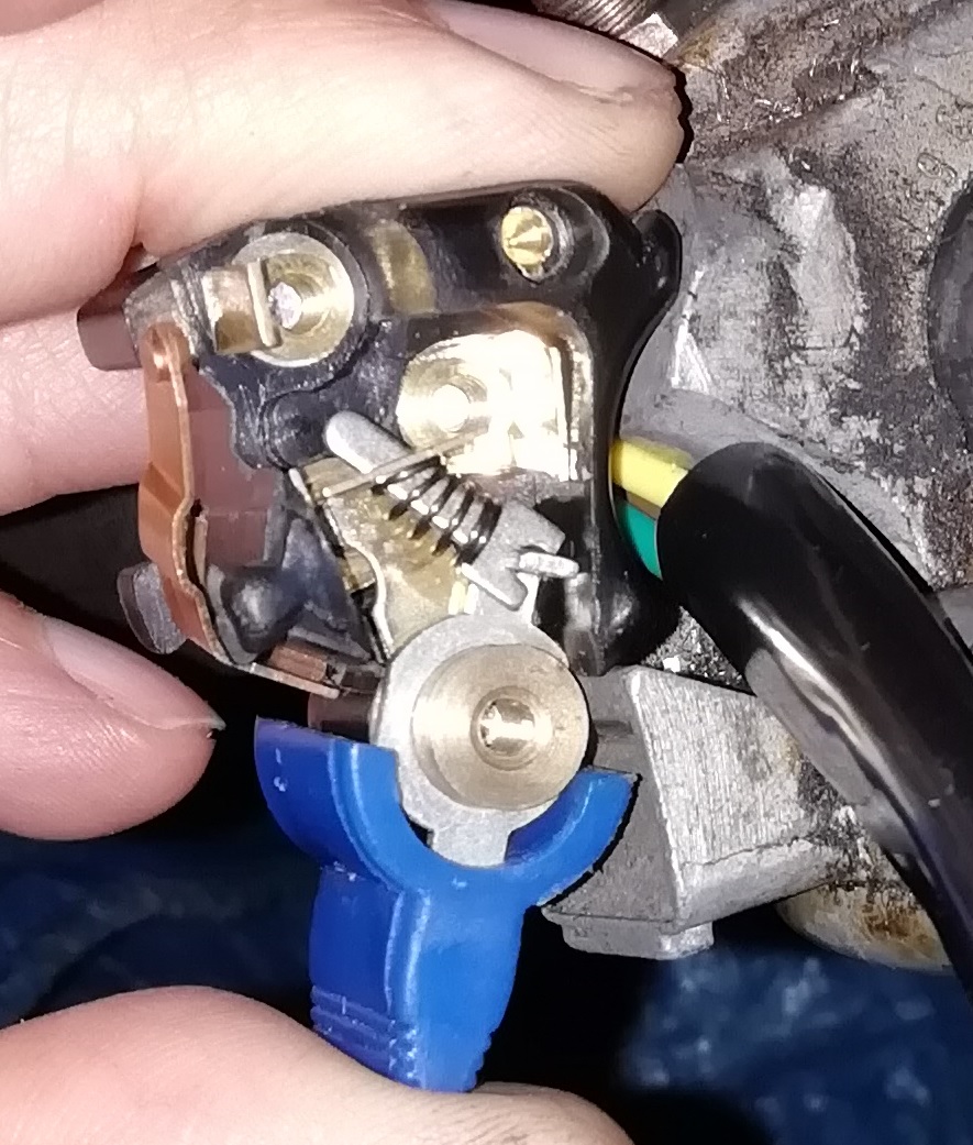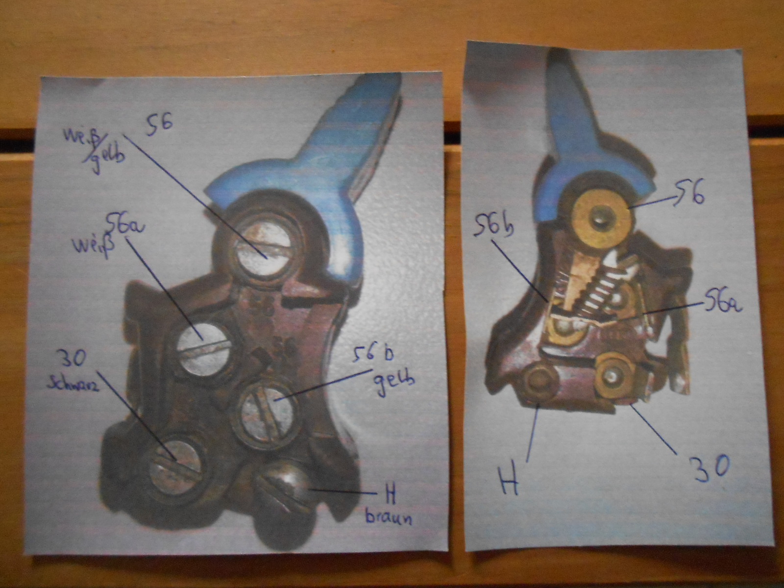 Die Leitungen sind wohl neuerdings am Nachbauschalter mit kleinen Lötfahnen befestigt, früher waren da nur die Enden verzinnt. Am besten mal gucken ob da alles gut angeschlossen ist, wenn du lieber deine Kabel direkt anschließen möchtest am Schalter....beim lösen der Schrauben gegenhalten, die Hülsen drehen mit !! Die braune Ader war übrigends weder verzinnt noch mit Endhülse, einfach nur so reingesteckt....