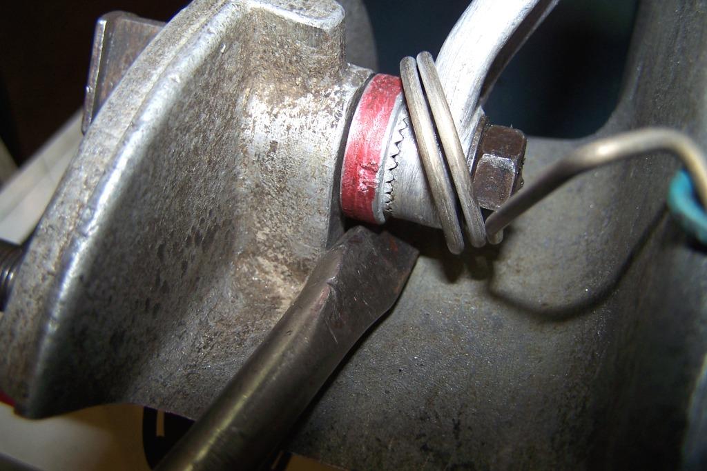 des Bremshebels noch ineinandergreift. Dann erst die Mutter am Bremshebel entgültig festziehen und