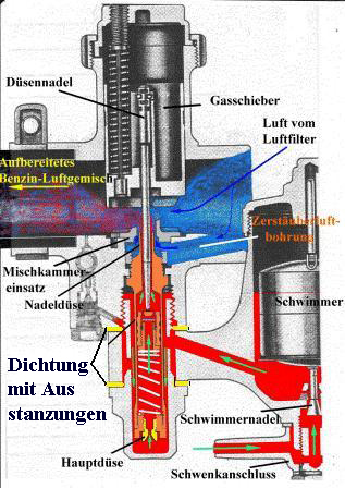 - Wenn bis hier alles O.K. ist, könnte die Leerlaufdüse durch Ablagerungen oder verharztem Sprit verstopft sein. - Wurde an der Leerlaufgemisch-Schraube (Regulierschraube) gedreht und dadurch das Leerlaufgemisch verändert ?